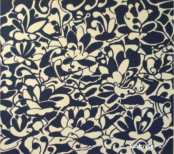 Ik beperkte me in het gebruik van maar twee kleuren. En ik wilde onderzoeken hoe ik de vormen kon laten vervloeien van 2 naar 3 D.