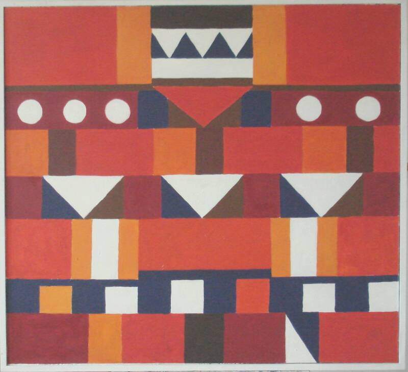 'Regel voor regel' begon ik kleur en vlakken aan te brengen. Door dit consequent te blijven doen ontstond er dit strak geometrisch patroon.